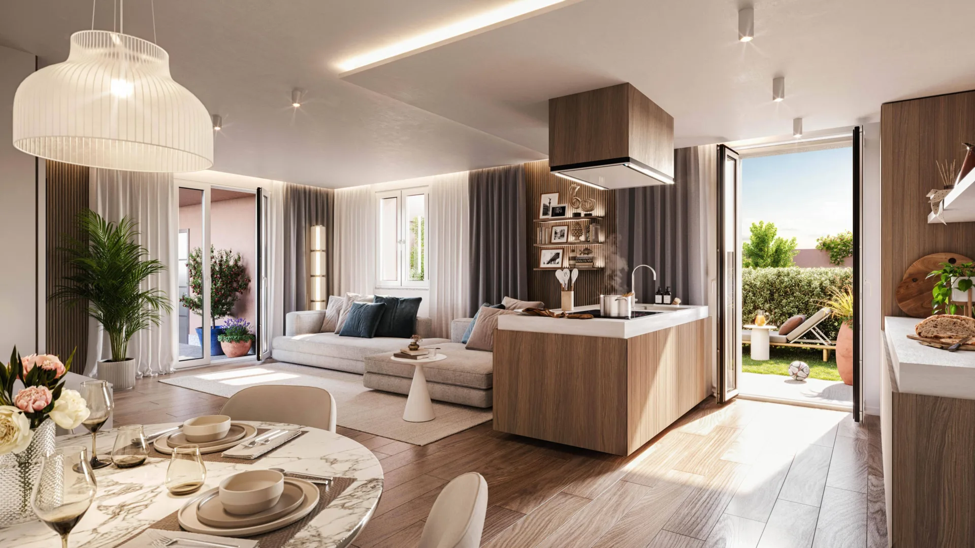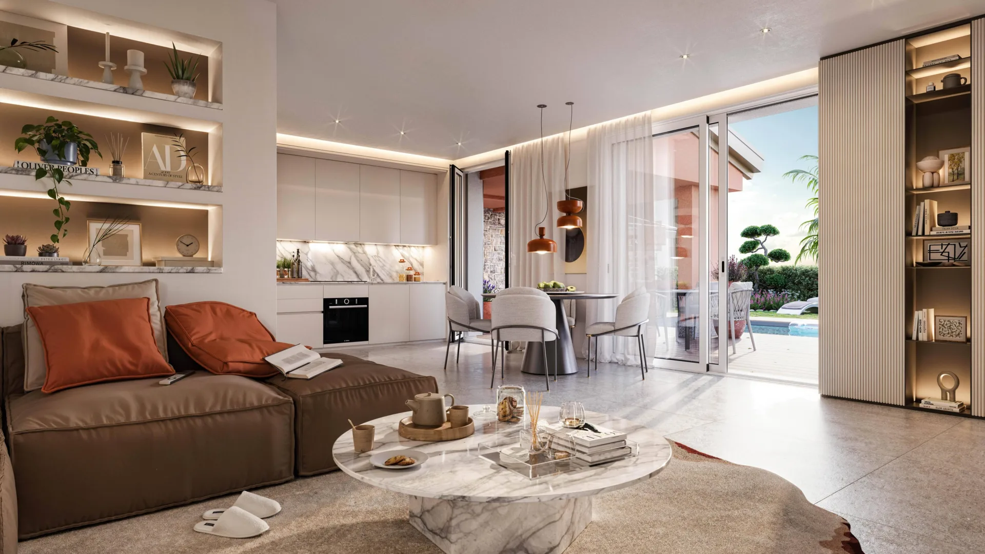 Varcare la soglia di queste residenze significa entrare in un mondo dove luce e spazio si incontrano, creando atmosfere intime e delicate. Le ampie vetrate amplificano la sensazione di libertà, lasciando che la luce naturale pervada ogni ambiente, tracciando confini invisibili tra interno ed esterno.