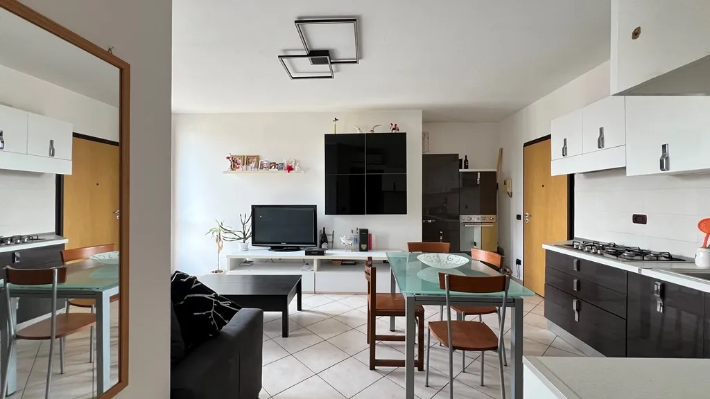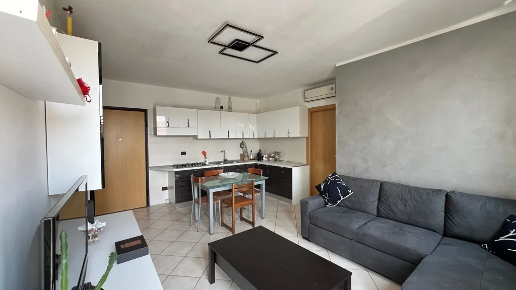 Situato al secondo e ultimo piano, servito da ascensore, l’immobile si apre su una luminosa zona giorno con cucina a vista e accesso diretto al balcone, ideale per momenti di relax all’aperto.