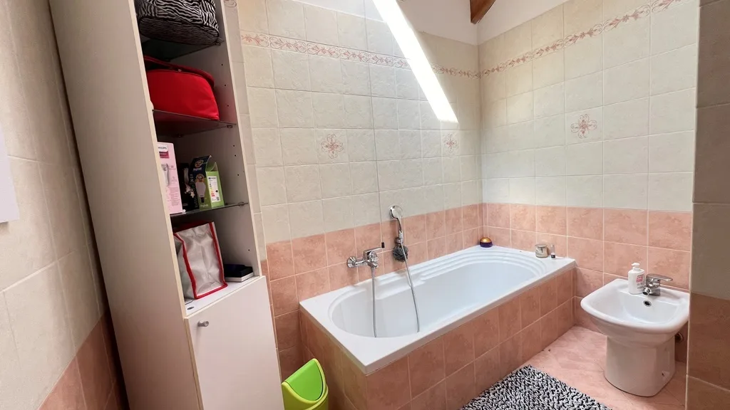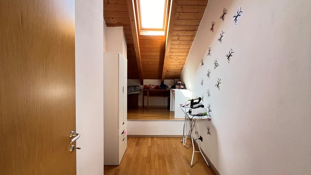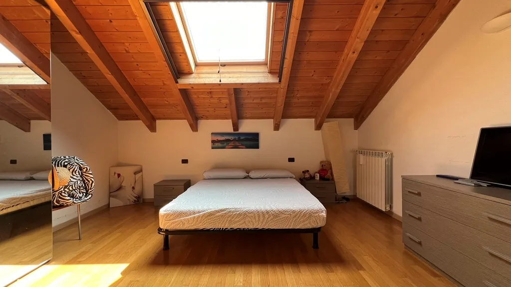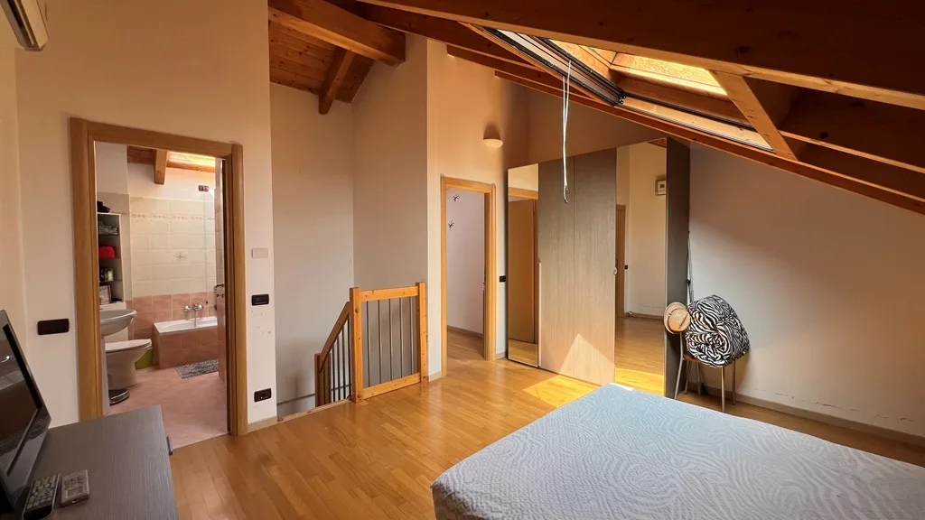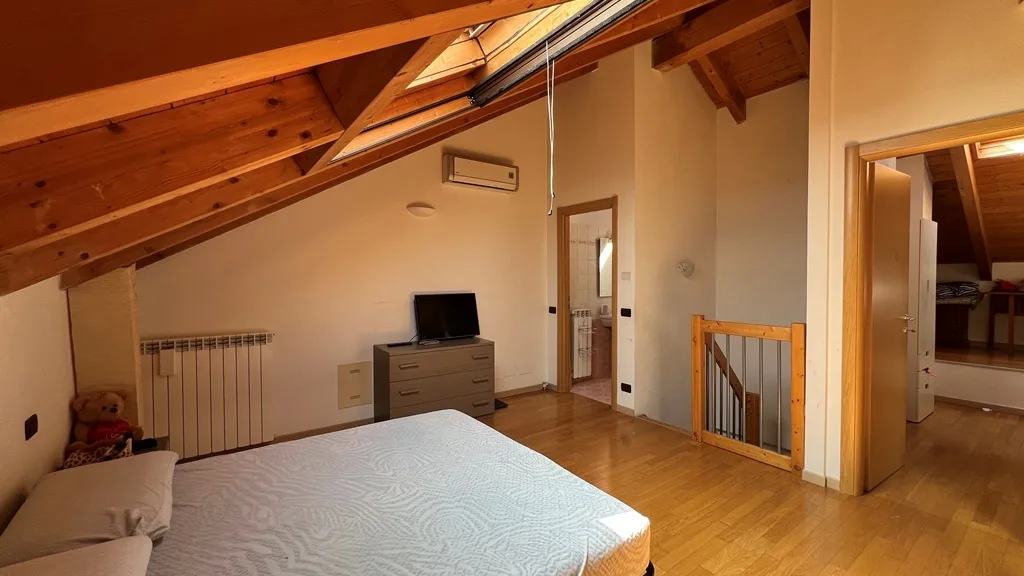 La zona notte, collocata nel piano sottotetto, è un’oasi di tranquillità: comprende una spaziosa camera matrimoniale, una comoda cabina armadio e un bagno dedicato. Un secondo bagno completa la funzionalità del livello principale, garantendo comfort e praticità.