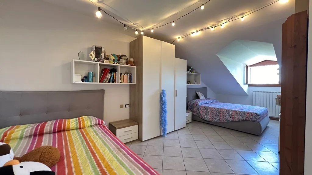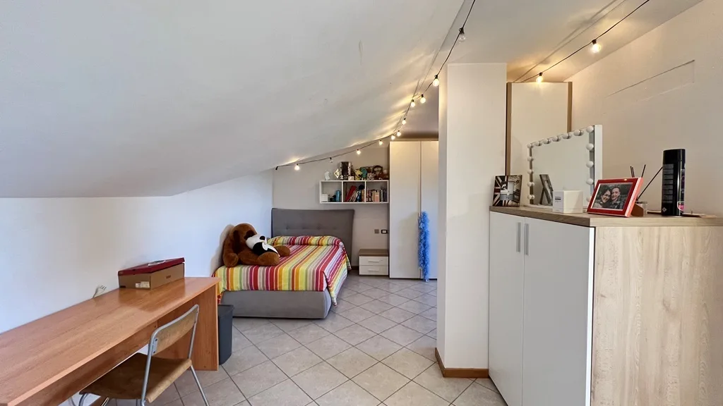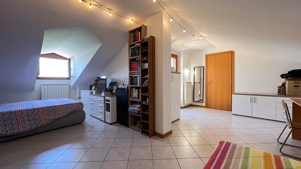 Il piano sottotetto, caratterizzato da un ambiente open-space versatile, può essere utilizzato come seconda zona notte, studio o locale hobby. Qui è presente anche un secondo bagno/lavanderia e un ulteriore terrazzo, ideale come angolo privato in cui rilassarsi.