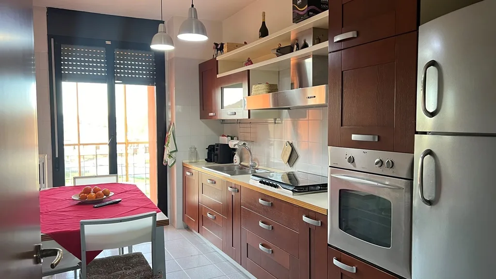 La cucina abitabile, completa di balcone, è perfetta per le cene in famiglia e gli incontri con gli amici.