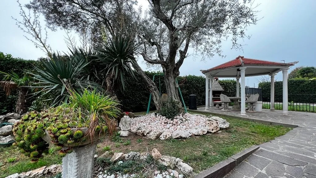 Completa la proprietà la magnifica taverna con locale lavanderia e box oltre all'ampio giardino privato distribuito sui tre lati della soluzione di mq 350 ca. dove è presente un laghetto con gazebo in muratura; sul retro è stato aperto un secondo accesso carraio dove sono presenti ulteriori due box e posti auto.