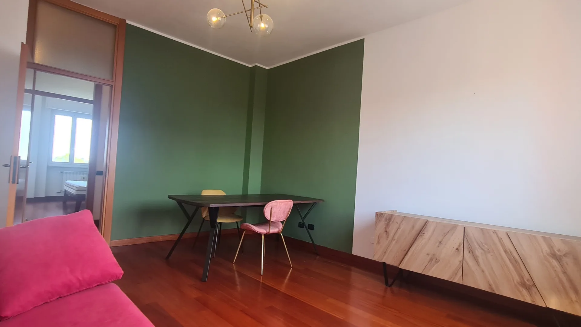 La zona notte comprende una camera matrimoniale con cabina armadio, una seconda camera versatile e un bagno finestrato con vasca/doccia, garantendo comfort e funzionalità.