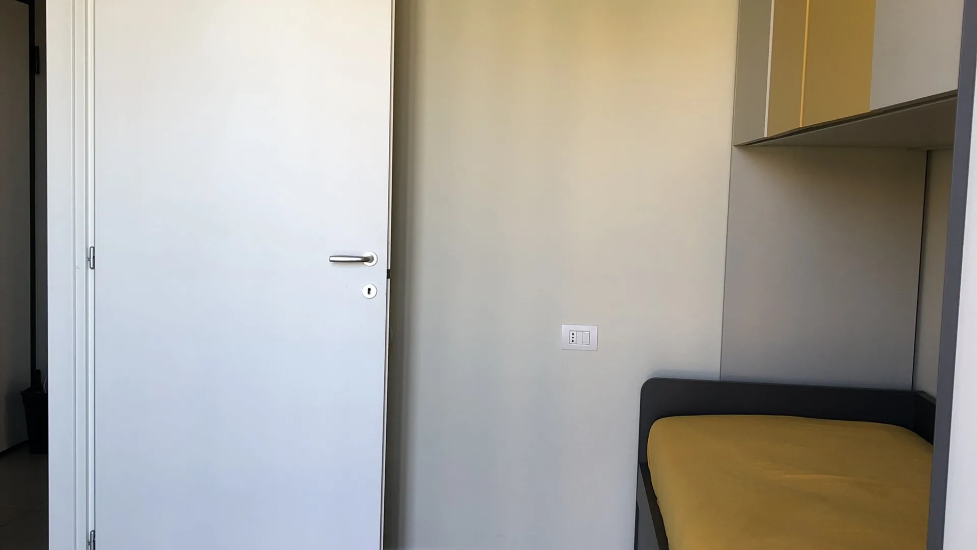 L’abitazione si compone di ingresso, ampia zona living con accesso a un generoso terrazzo, camera matrimoniale, camera singola, doppi servizi e cantina.