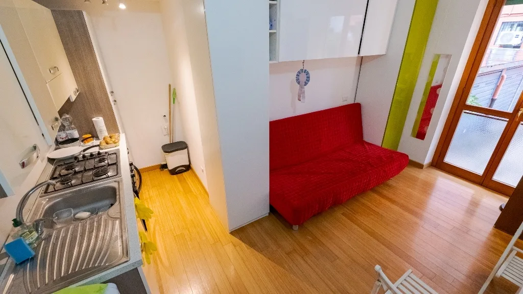 Piano rialzato, monolocale arredato con zona giorno/notte, cucina e bagno.