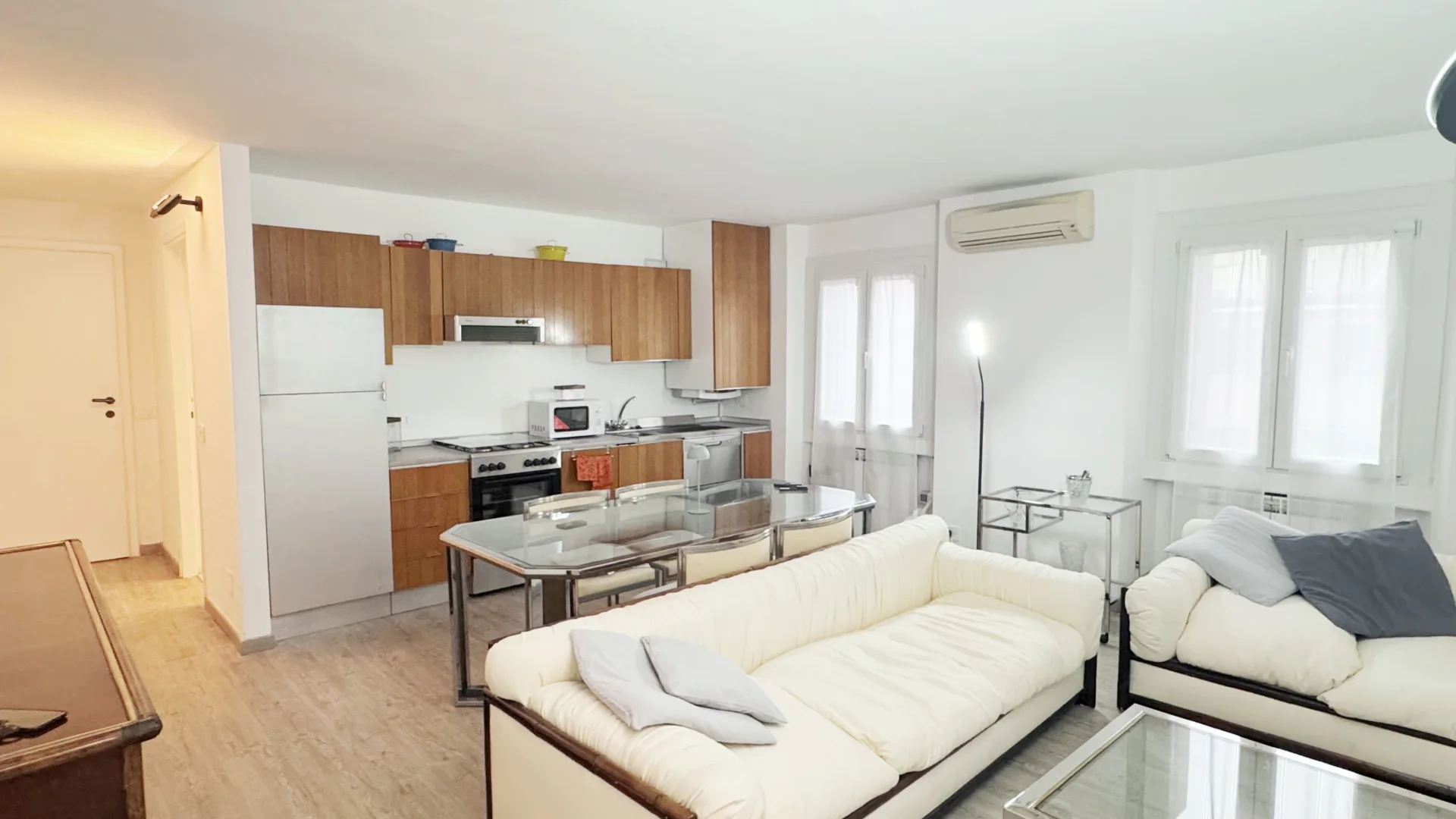 In stabile degli anni '50, appartamento di 2 locali molto silenzioso, con esposizione interna, composto da ingresso, disimpegno con ripostiglio, luminoso soggiorno con cucina a vista, ampia camera matrimoniale e servizi.