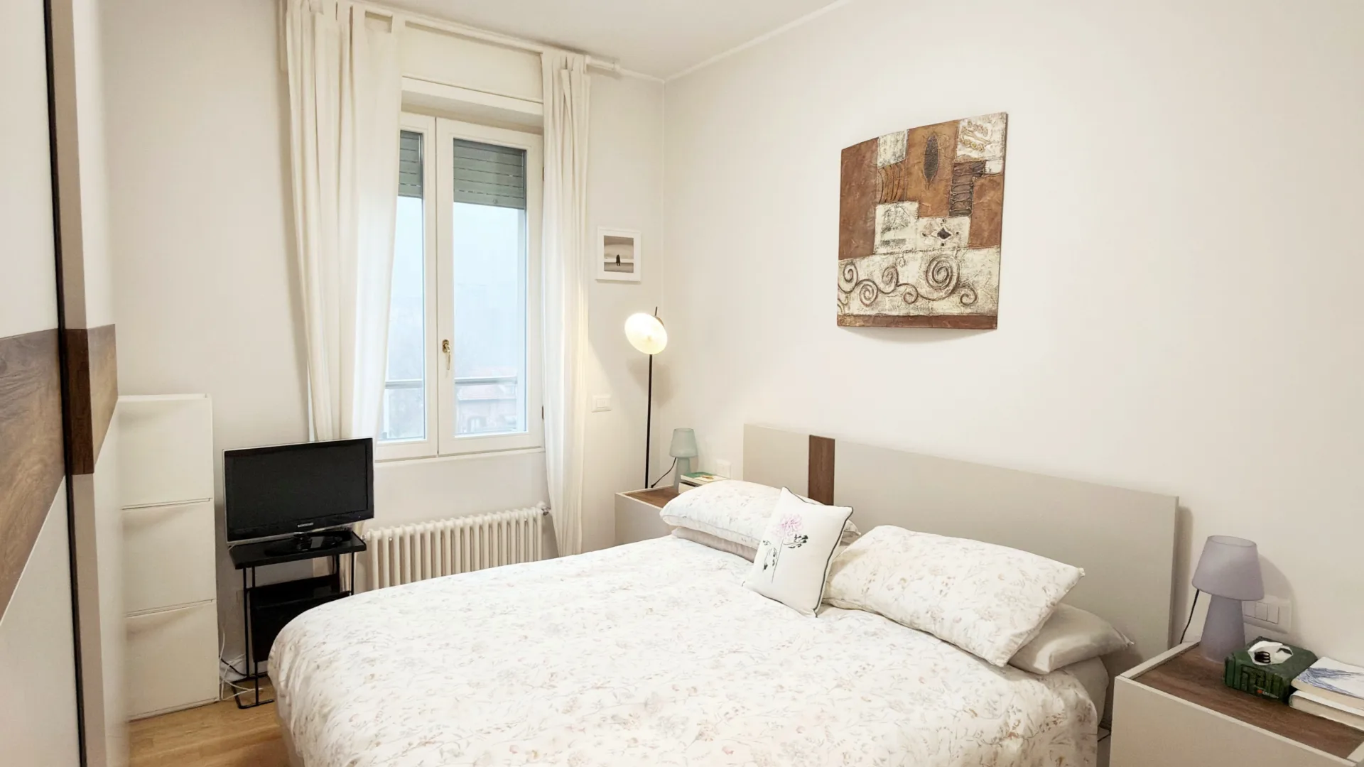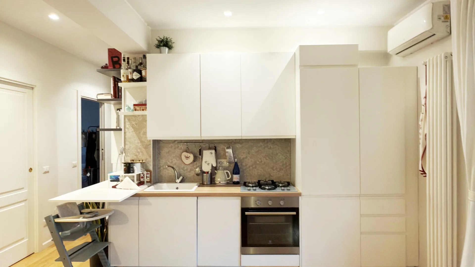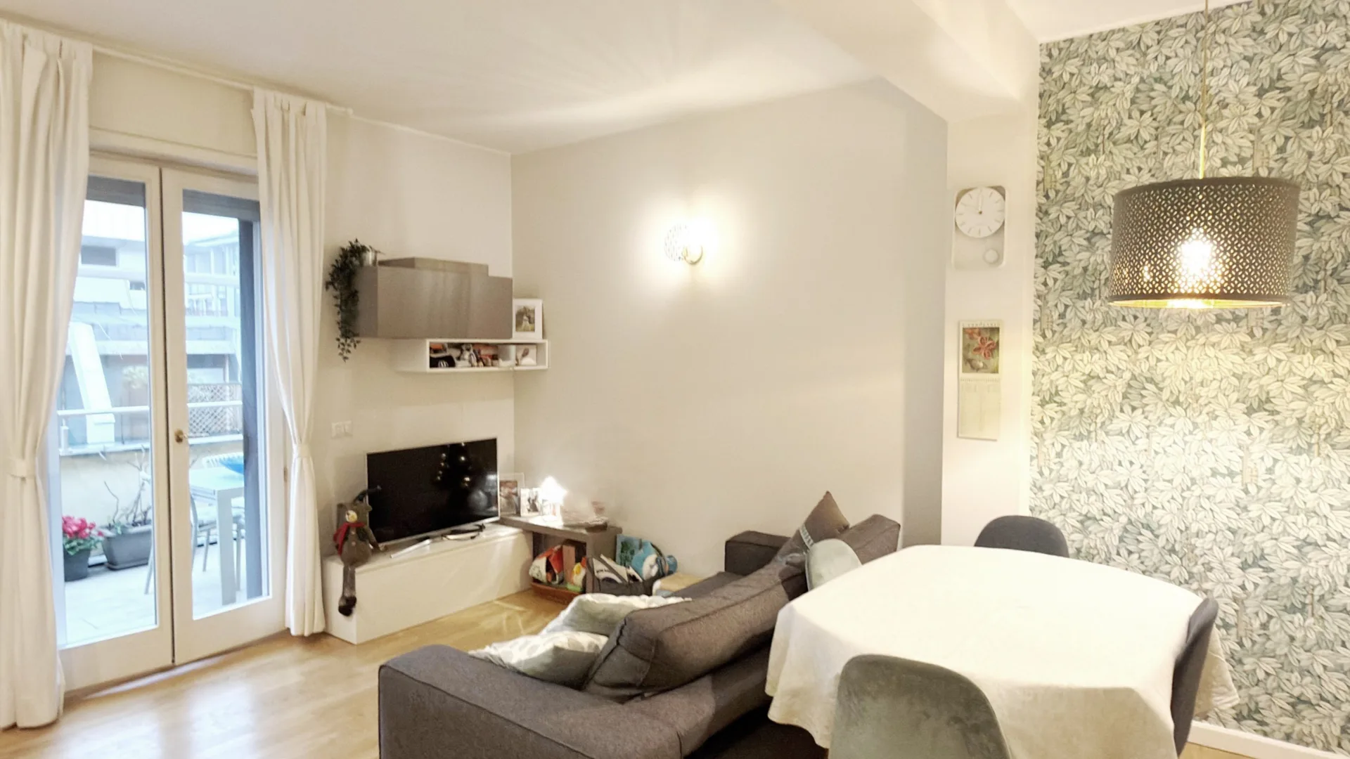L’immobile è composto da soggiorno con cucina a vista e accesso al terrazzo, camera matrimoniale, camera singola/studio e servizio.