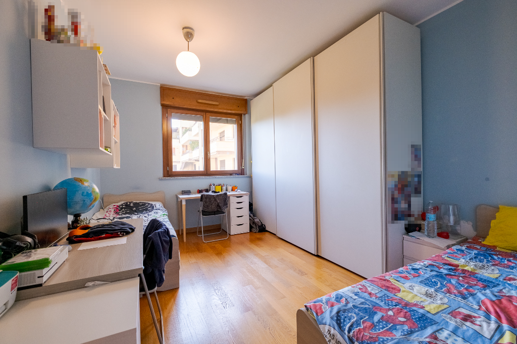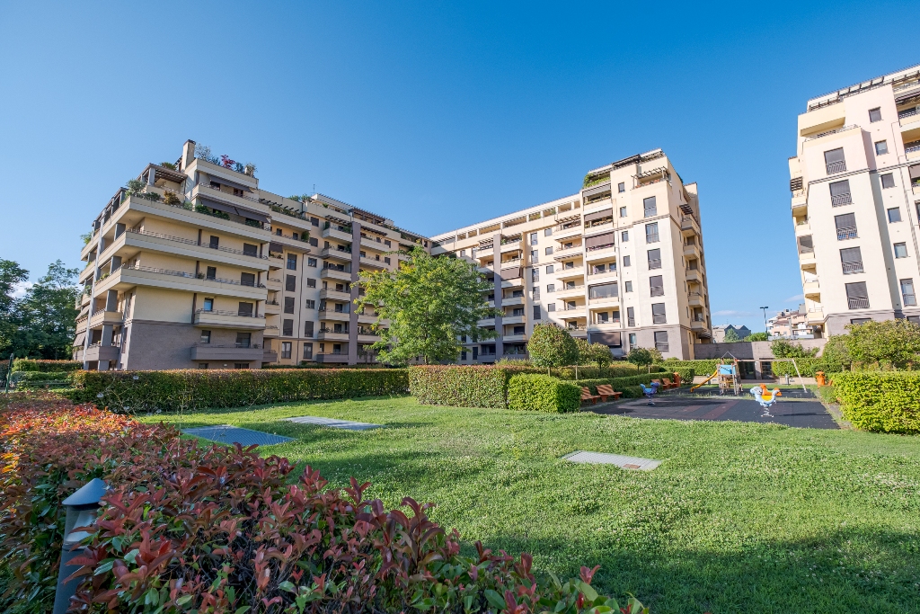 Nella bellissima cornice del Parco delle Cave, in complesso residenziale di recente realizzazione, al quinto piano, splendido appartamento di 3 locali con ampia e luminosa zona living con accesso diretto su terrazzo vivibile con vista sul curato giardino condominiale, cucina abitabile con balcone, camera matrimoniale, seconda camera e doppi servizi finestrati. Cantina.