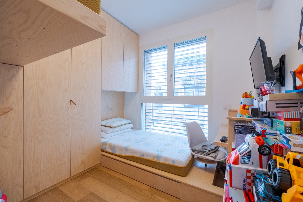 Zona living con cucina a vista e accesso diretto sulla loggia esterna, camera matrimoniale con balcone, seconda cameretta e bagno. Cantina di pertinenza.
