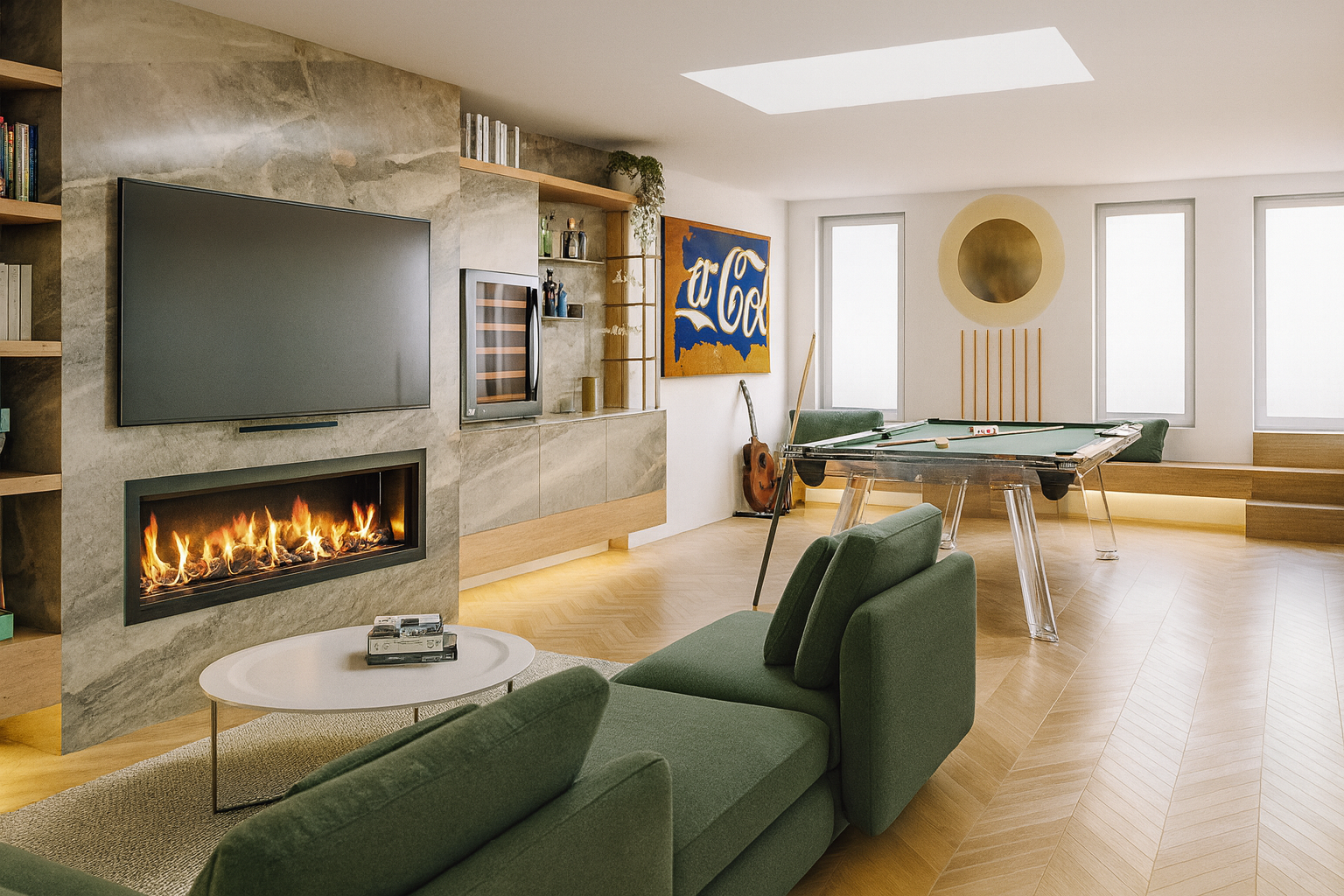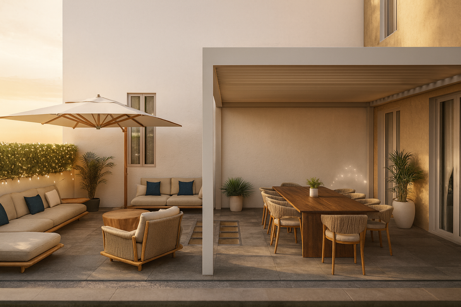 living di rappresentanza, cucina abitabile di design con ampio terrazzo privato di 46 mq che crea una naturale estensione tra interno ed esterno, suite padronale con cabina armadio e bagno privato, due camere da letto con bagno dedicato, taverna attrezzata, lavanderia e spazi wellness con possibilità di SPA, palestra o studio.
